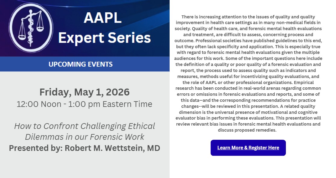 For scholarly analysis and peer-reviewed studies, the AAPL Journal delivers the latest in forensic psychiatric research and developments.