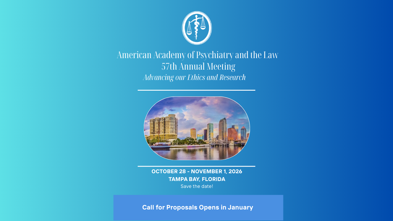 The American Academy of Psychiatry and the Law designates this live activity for a maximum of 31.75 AMA PRA Category 1 Credits™. Physicians should claim only the credit commensurate with the extent of their participation in the activity.